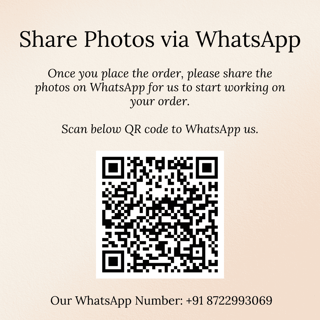 Note: Once you place the order, share the photos with us on WhatsApp along with the order number. Click here to WhatsApp us.